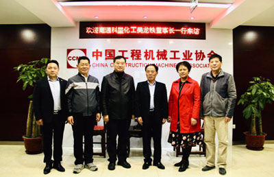 2020年11月12日,南通科星化工有限公司造訪中國工程機械協(xié)會,中國工程機械協(xié)會會長兼秘書長蘇子孟(左三)和中國工程機械工業(yè)協(xié)會副秘書長尹曉荔(右二)親切接待。