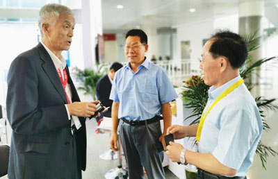 2019年9月4日,北京第十五屆中國國際工程機械展覽與技術交流會期間,南通科星化工股份有限公司董事長吳龍鐵(右一)向中國工程機械工業(yè)協(xié)會名譽會長、特別顧問祁俊(左一)匯報公司發(fā)展情況。