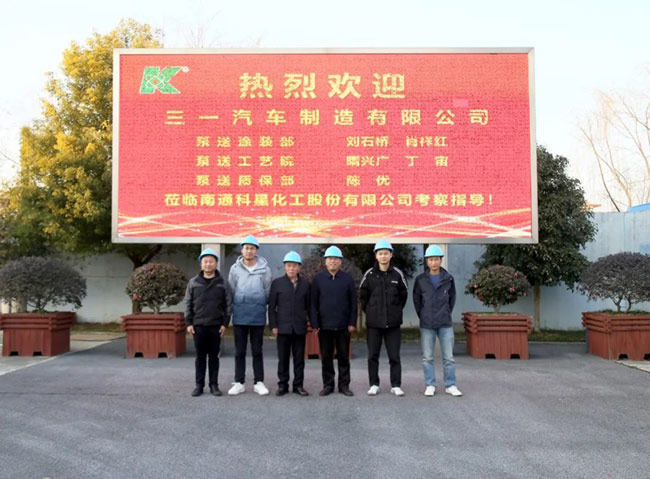 2023年2月20日,三一汽車制造有限公司泵送涂裝部劉石橋、肖祥紅,工藝部隋興廣、丁宙,質保部陳優蒞臨江蘇科星新材料暨南通科星化工股份有限公司考察指導,科星董事長吳龍鐵、銷售經理李春華熱情接待。