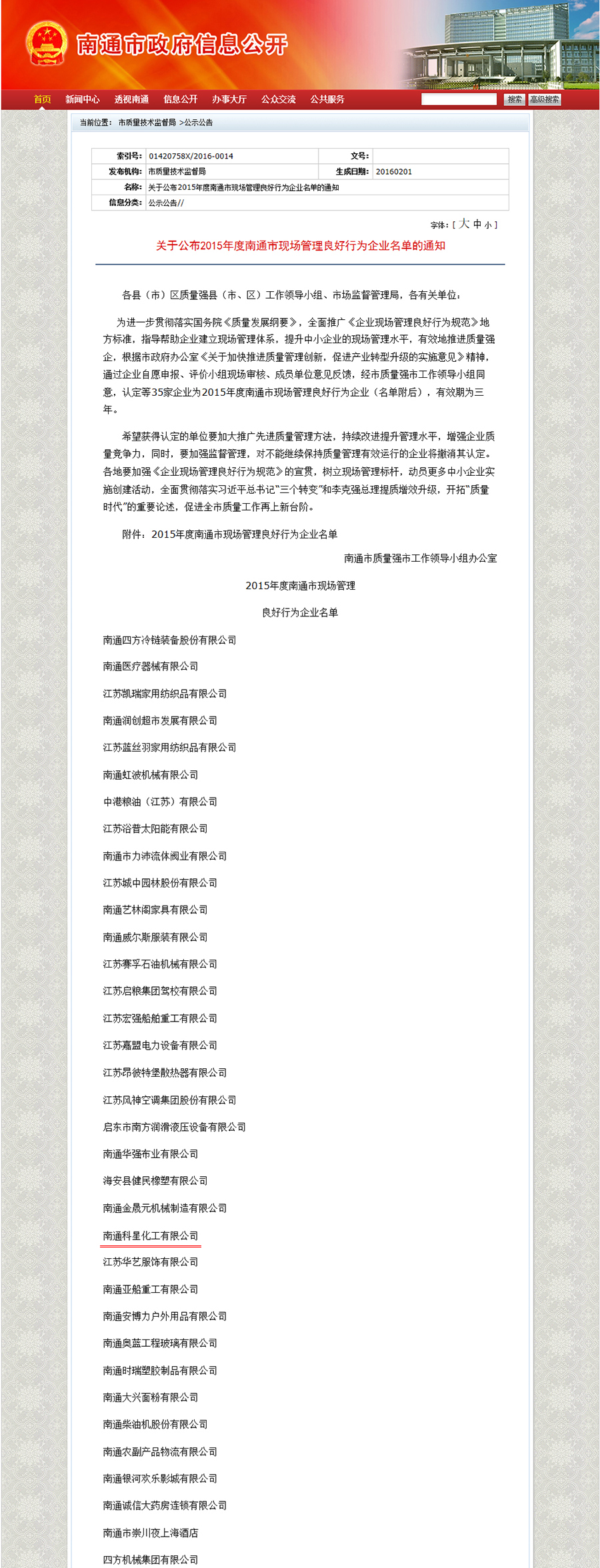 2015年度南通市現(xiàn)場(chǎng)管理良好行為企業(yè)