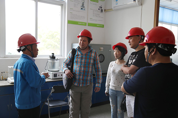 董事長吳龍鐵先生為來賓介紹了科星在金屬加工液生產和環保循環利用方面的突出優勢,以及科星作為國家級高新技術企業所具備的行業頂尖科研實力。加拿大考察團隊對此給予了高度評價。