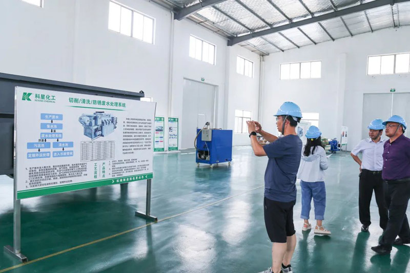 調研研發中心后,考察組一行來到科星生產基地,科星副總吳昌祥對科星的生產現場進行了詳細介紹,考察組對科星生產原料嚴格把關、產品質量嚴格把控等有了清晰了解。在參觀環保設備配套項目時,對科星想客戶所想,為客戶單位因清洗劑、切削液等使用中產生的廢液得到環保處理而大加贊揚:“后期考慮作為美的環保設備的延伸使用。”