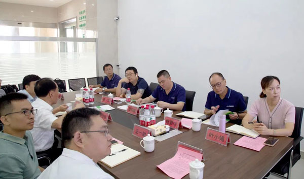 2023年8月17日,廣西北海玉柴馬石油高級潤滑油有限公司董事長范陽輝、總經理陳嘉琮領導一行蒞臨江蘇科星新材料暨南通科星化工股份有限公司考察指導,科星董事長吳龍鐵、執行總裁吳曉強、技術總工程師王一助陪同接待。