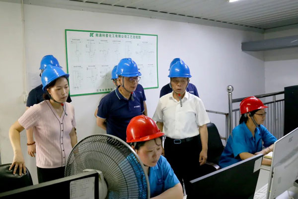 隨后,領導一行來到科星生產基地,查看了檢測中心、原料輸送區、生產車間、中控室、倉庫等現場,對生產原料及成品嚴格把關、產品質量嚴格把控等有了清晰了解。