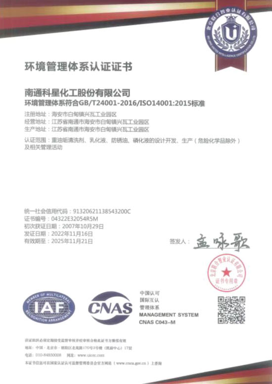 環境管理體系認證證書