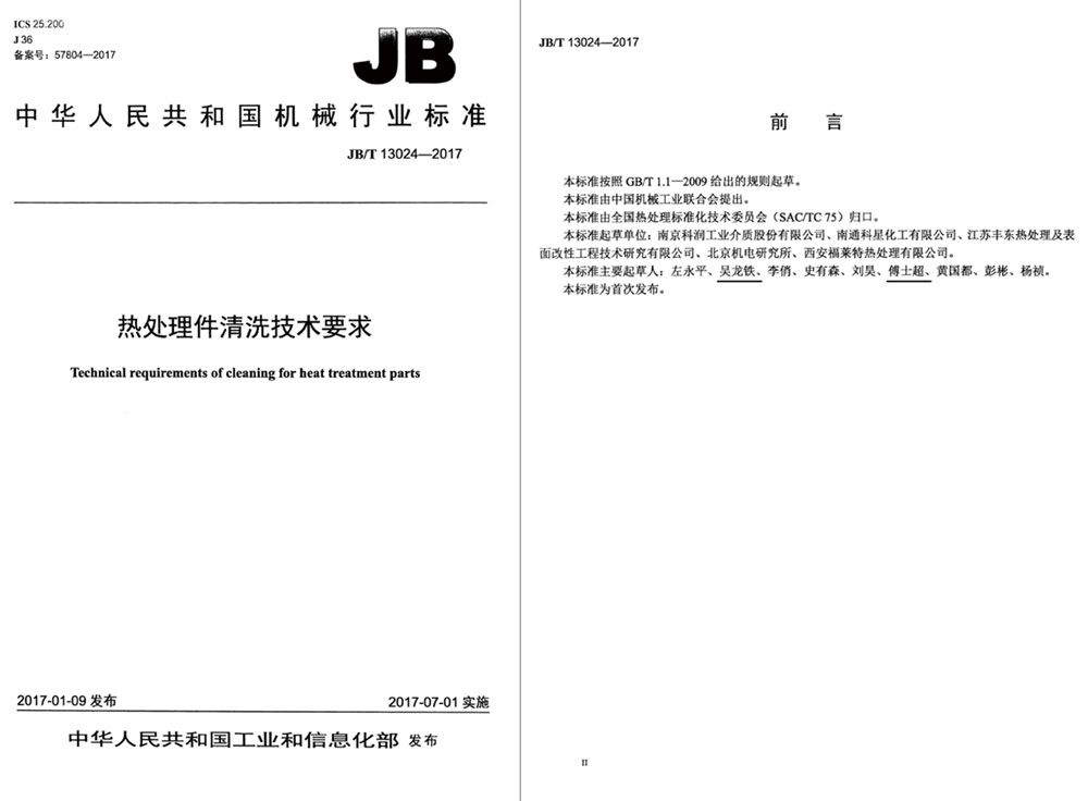 熱處理件清洗行業標準